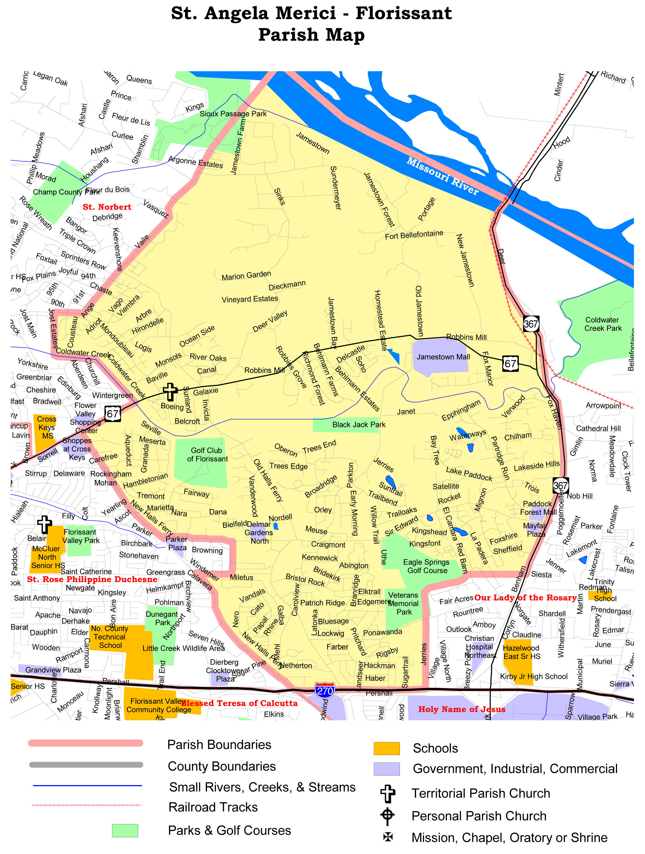 - Archbishop Joseph Ritter founded Saint Angela Merici Parish.